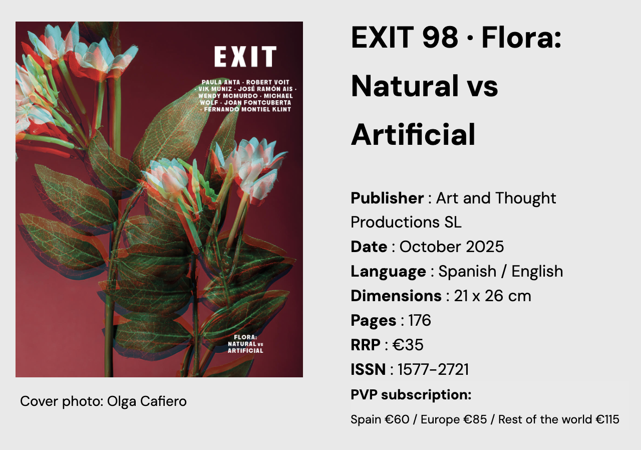 In times of environmental crisis, the proliferation of plastics, and the mass extinction of animal and plant species, EXIT #98 proposes a look beyond the artistic and aesthetic at an openly domestic and widespread phenomenon: the current proliferation of artificial reproductions of global flora, and how this also affects photographic representation, both in terms of scientific botanical photography and in the recreation of the natural and everyday life in Western societies. The ontological components of this substitution of the natural for the artificial are well defined by philosopher Michael Marder , champion of a new movement that advocates for the inclusion of the study of how plants communicate with their environment within the broader framework of human philosophy, as a last-ditch attempt to avoid our own extinction. He has written an interesting essay exclusively for EXIT in which he analyzes the metabolic problems of plastic compared to natural materials, and the effects that this will have on our societies as long as we do not address a broader understanding and knowledge of plants.
